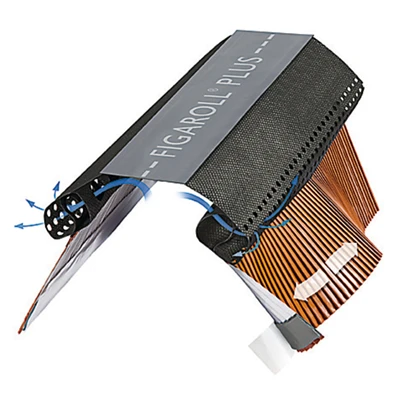 - Déplier les jupes du FIGAROLL PLUS afin qu’il s’adapte au profil de la tuile (largeur de 28 à 32 cm et de 34 à 38 cm).