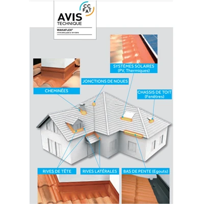 - Utiliser les propriétés de marouflage du Wakaflex sur les tuiles aval