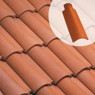 Demi-tuile à emboîtement grand moule fortement galbée, en terre cuite.