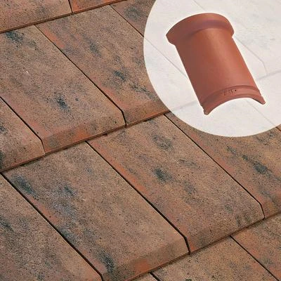 Tuile faîtière arêtier 1/2 rond à emboîtement petit modèle en terre cuite.