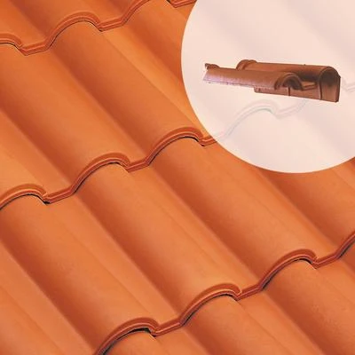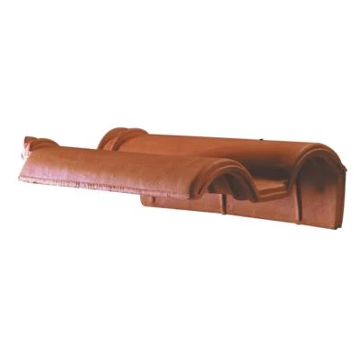 Tuile de rive en terre cuite à rabat droite à recouvrement, gamme ROMANE. Permet la finition des rampants de pignon.