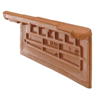 Rive individuelle verticale droite à emboîtement à grand rabat, en terre cuite, permettant la finition des rampants de pignon.