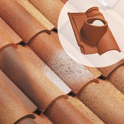 Tuile à douille, en terre cuite, diamètre int. du tuyau d’évacutaion : 160 mm (conforme VMC).