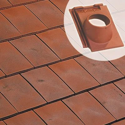 Tuile à douille en terre cuite diamètre de 120 mm, permettant le passage des évacuations.