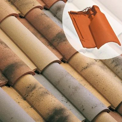 Tuile chatière, en terre cuite, avec grille assurant la ventilation de la sous-face des tuiles.