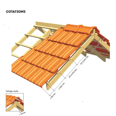 La tuile Marseille Poudenx est associée une gamme d’accessoires qui autorise la pose à sec ou la pose scellée de l’ensemble des éléments.