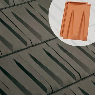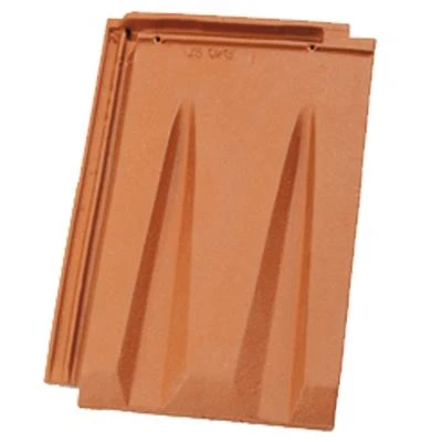 Tuile en terre cuite grand moule faiblement galbée à double emboîtement et à pureau variable. Elle se pose à joints droits ou croisés. Dimensions : L. 47.5 cm x l. 31.5 cm Nombre au m² : 9.5 Poids unitaire : 4.2 kg
