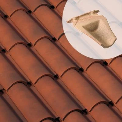 Casson de faîtage, en terre cuite, permetttant l’étanchéité sous les tuiles faîtières.