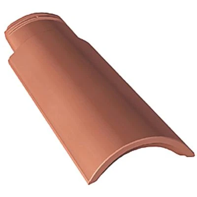 Demi-tuile, en terre cuite, permettant la jonction entre les tuiles normales et les tuiles de rives droites.