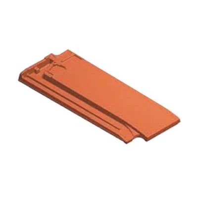 Demi-tuile, en terre cuite, permettant la jonction entre les tuiles normales et les tuiles de rives droites.