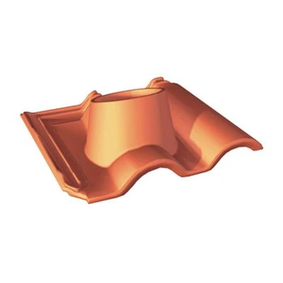 Tuile à douille, en terre cuite, diamètre int. du tuyau d’évacutaion : 175 mm.
