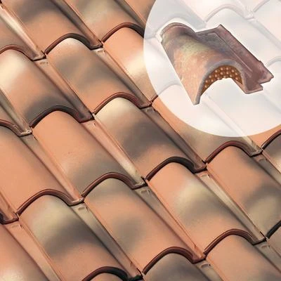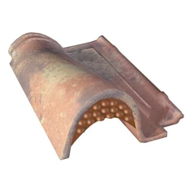 Tuile chatière grillagée, en terre cuite, assurant la ventilation de la sous-face des tuiles.