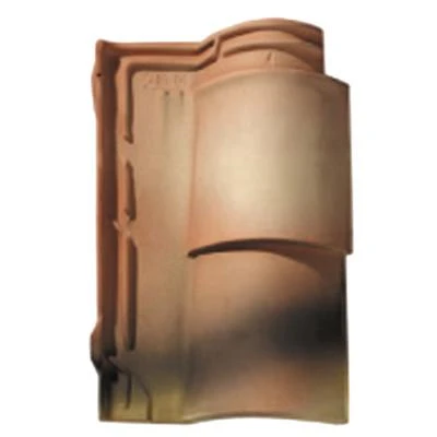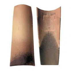 Tuile de terre cuite double emboîtement, double recouvrement.