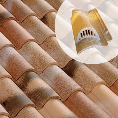 Tuile chatière avec possiblité de mettre une grille, en terre cuite, assurant la ventilation de la sous-face des tuiles. Adaptable aux tuiles de type DC12.