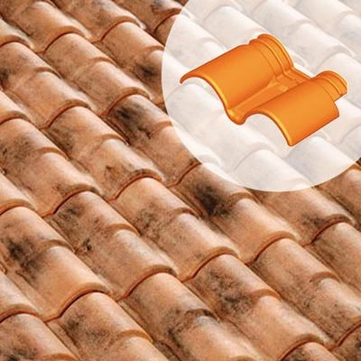 Double tuile de rive 1/2 pureau à raccordement, en terre cuite, permettant d’assurer la jonction entre les tuiles et la rive de votre toiture.