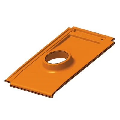 Tuile à douille, en terre cuite, diamètre int. du tuyau d’évacutaion : 100 mm.
