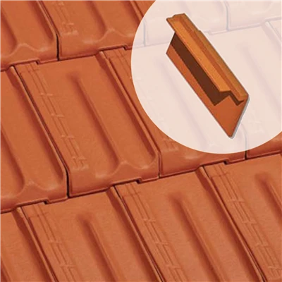 Tuile de rive individuelle droite à emboîtement, en terre cuite. Permet la finition des rampants de pignon. Accessoire de la tuile à côte universelle, à double emboîtement et double recouvrement.