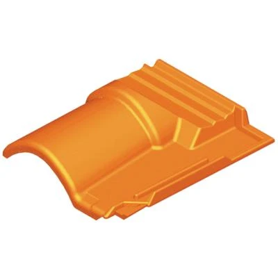 Tuile sous-faîtière, 3/4 pureau, en terre cuite. Permet une jonction parfaite entre le faîtage et les tuiles normales.