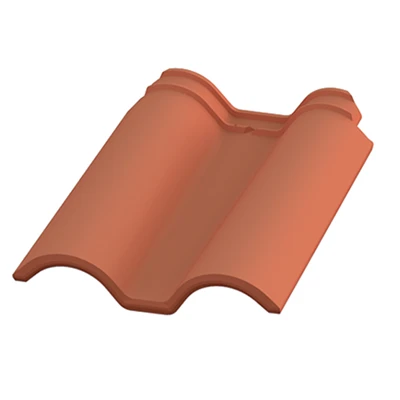 - Tuile mécanique en terre cuite composée de deux parties incurvées et d’une partie plate.